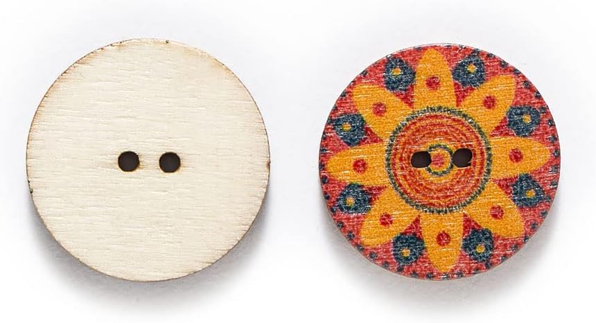 🪡 50pcs Mixed Pattern Vintage Wood Buttons – Round, 2-Hole for DIY Crafts & Sewing
